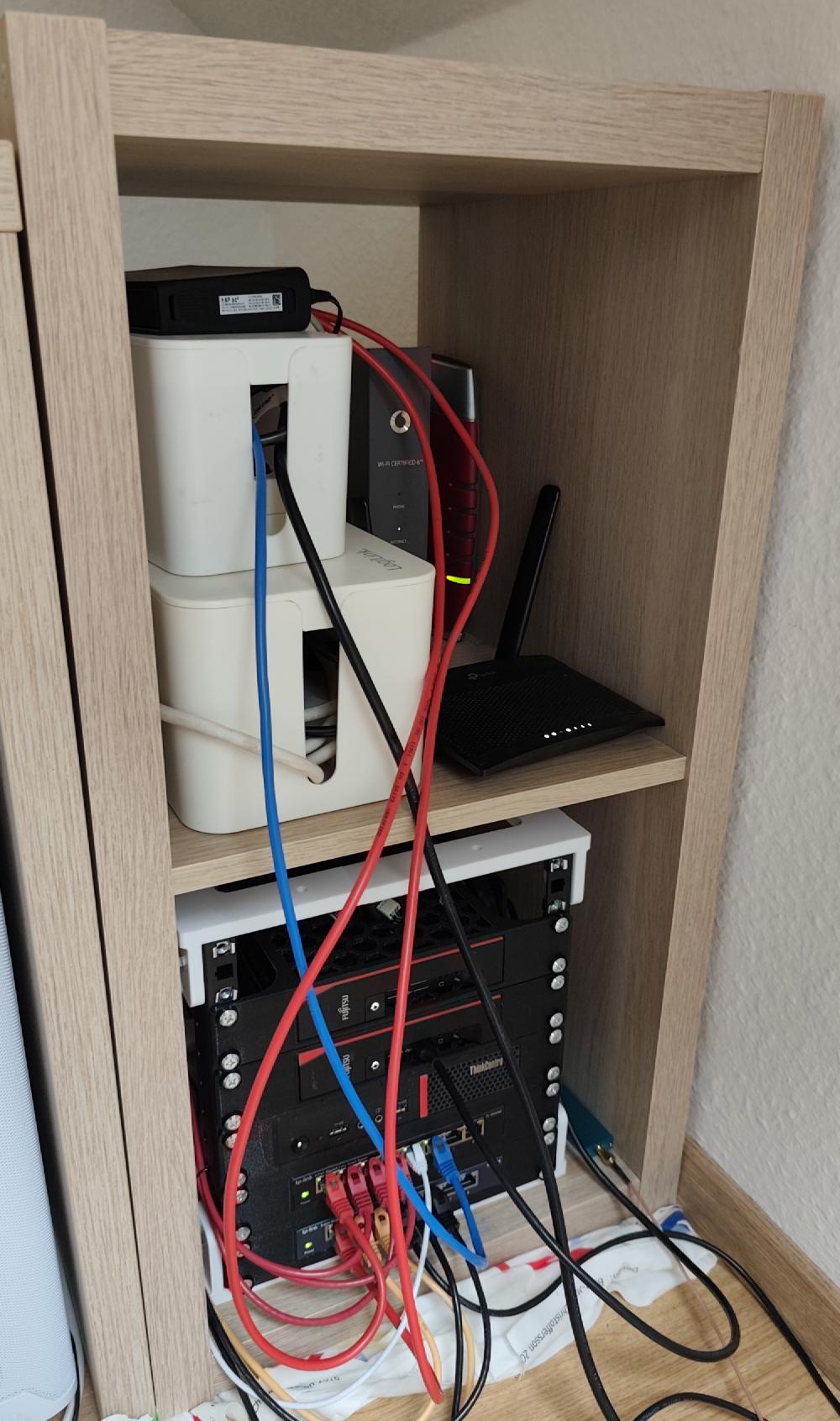 …das ist eine gute Frage. Gerade wenig konkretes. Ich habe viele Ideen, aber was davon ich wann umsetze, weiß ich tatsächlich nicht. Der Router ist für manches zu schwach (und hat auch wenig Speicher), ein Switch mit PoE wäre schön (damit der Injektor wegfällt), mehr Mini-PCs statt Thin-Clients wären eine Idee, ein NAS für VMs und co wäre cool, ein Server mit GPU fände ich auch nett…