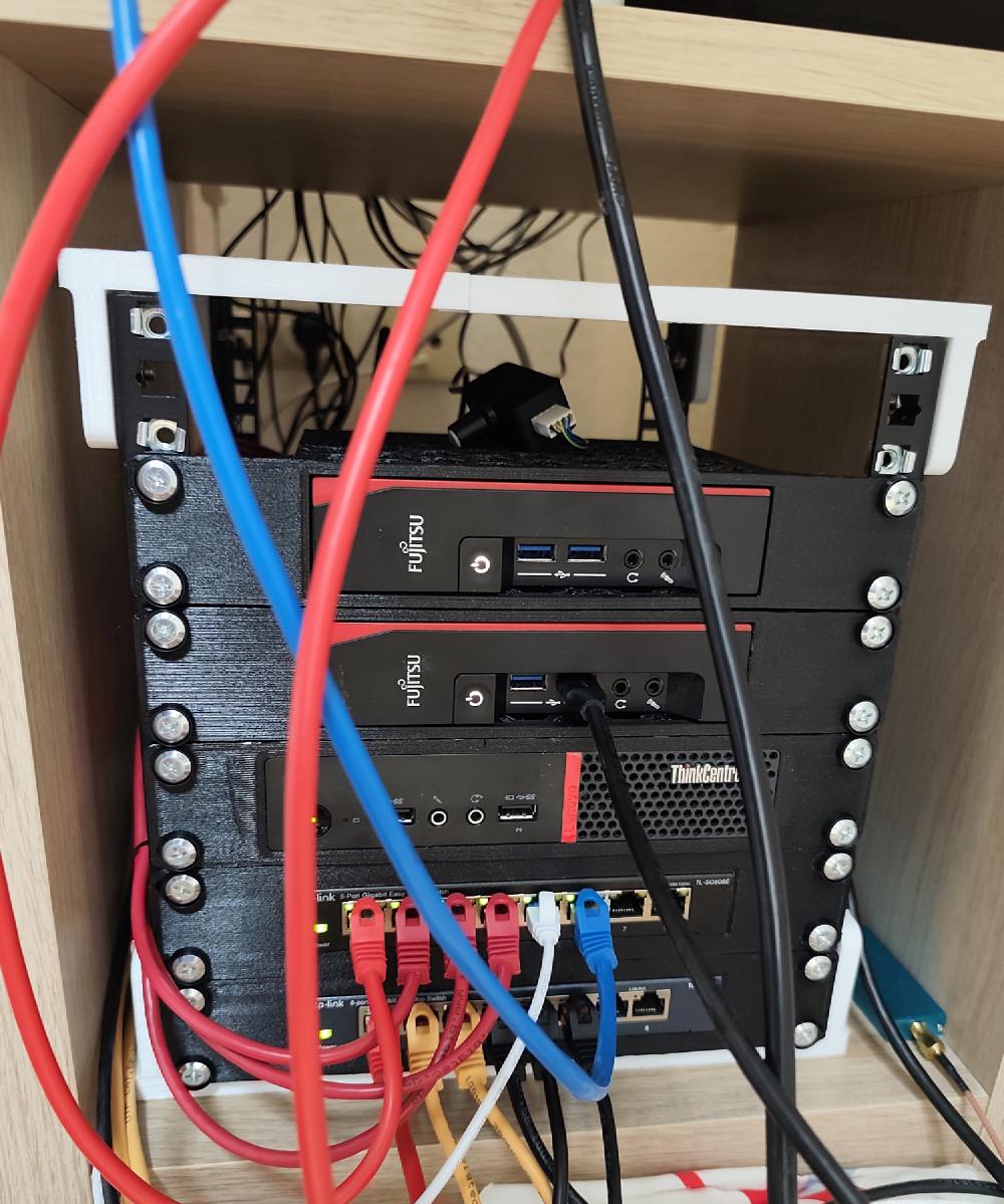 Anfang des Jahres sind einige Hardware-Upgrades passiert, aber wenig sichtbares. Im Sommer habe ich allerdings beschlossen, mir ein 10-Zoll-Rack zu bauen. Die Rahmen sind mit dem 3D-Drucker gedruckt, die Schienen zum Festschrauben als fertige Teile gekauft.
